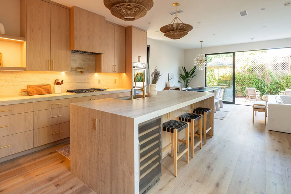 An aesthetic that emerged in the early 20th century and flourished in subsequent decades, Scandinavian design is widely regarded for its simplicity, durability, and warmth. Blending neutral tones with natural woods in airy, light-filled spaces where form follows function, the singular style originated amid spare Nordic landscapes but has become a highly desirable choice in locales far removed from those chilly climes. On the convivial sunny coast of Southern California—steps from sandy Venice beaches and the trendsetting stretch of Abbot Kinney Boulevard’s shops, restaurants, galleries, and century-old bungalows—that clean, fresh, organic minimalism of Scandinavian design holds sway at this serene new 3,308-square-foot residence.